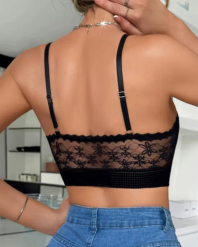 Soutien-gorge femme sans armatures ni rembourrage – Style sexy orné de fleurs, dos nu et tendance