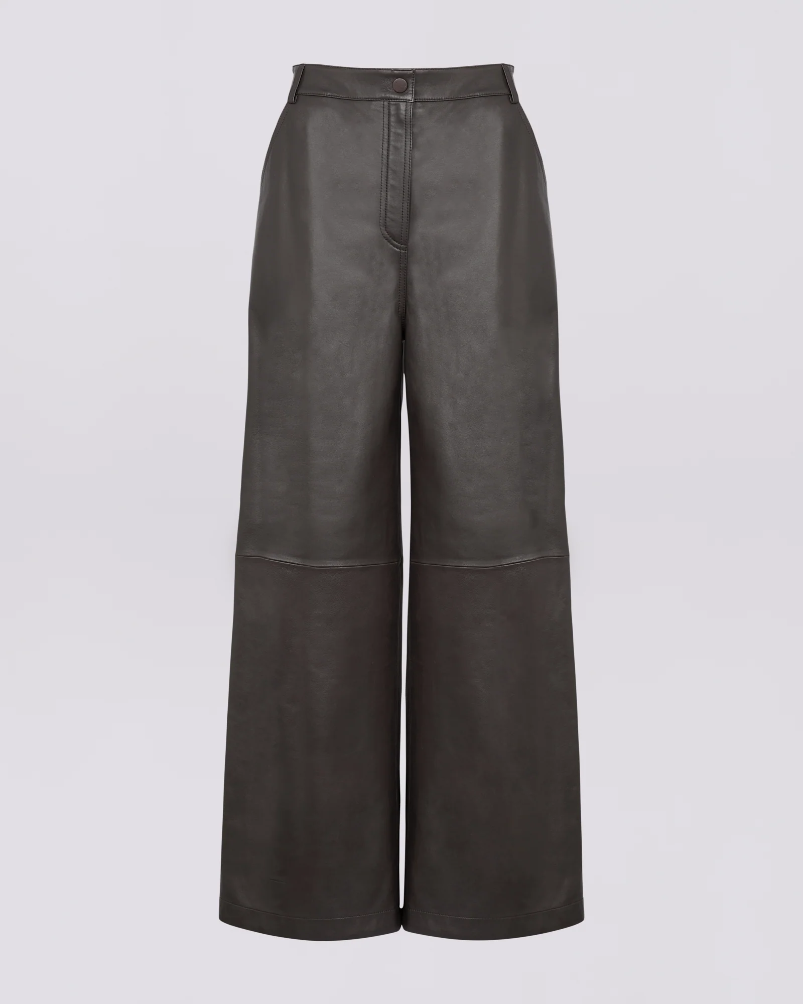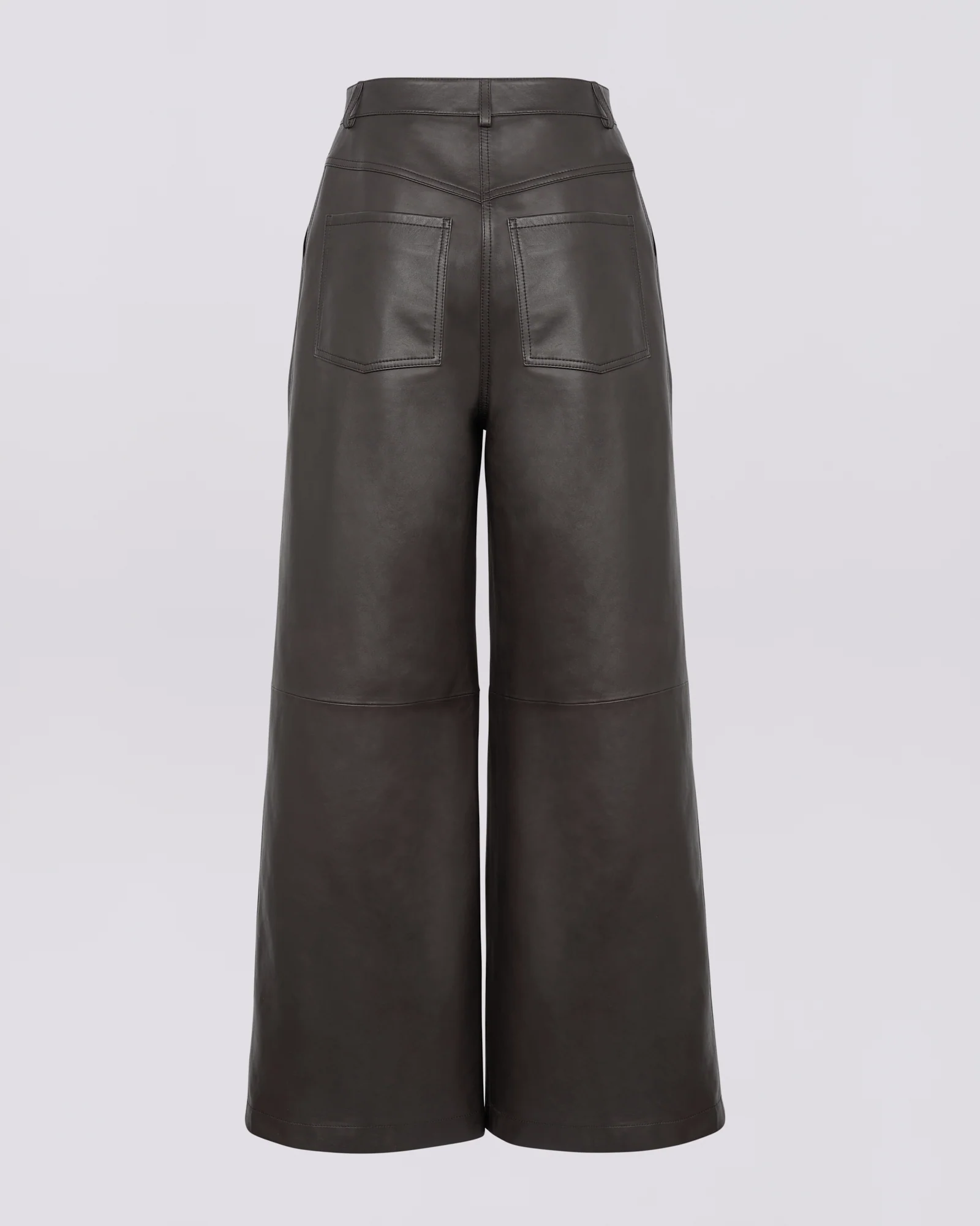 Supple lambskin underlines the straight, wide cut of these classic trousers. Two back pockets and two jeans pockets provide visual and practical detailing. The design is part lined.