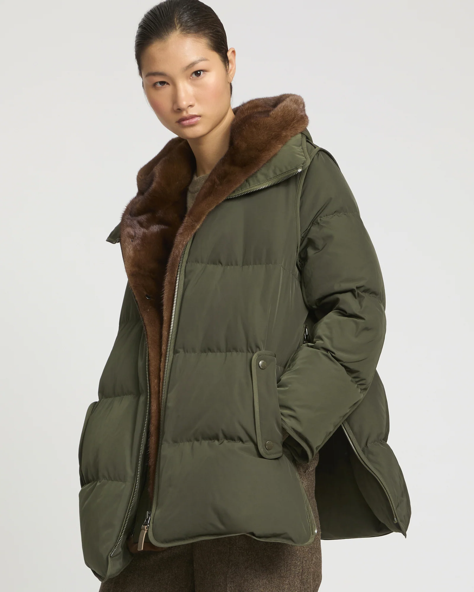 « A » line down jacket with lambskin shearling bib