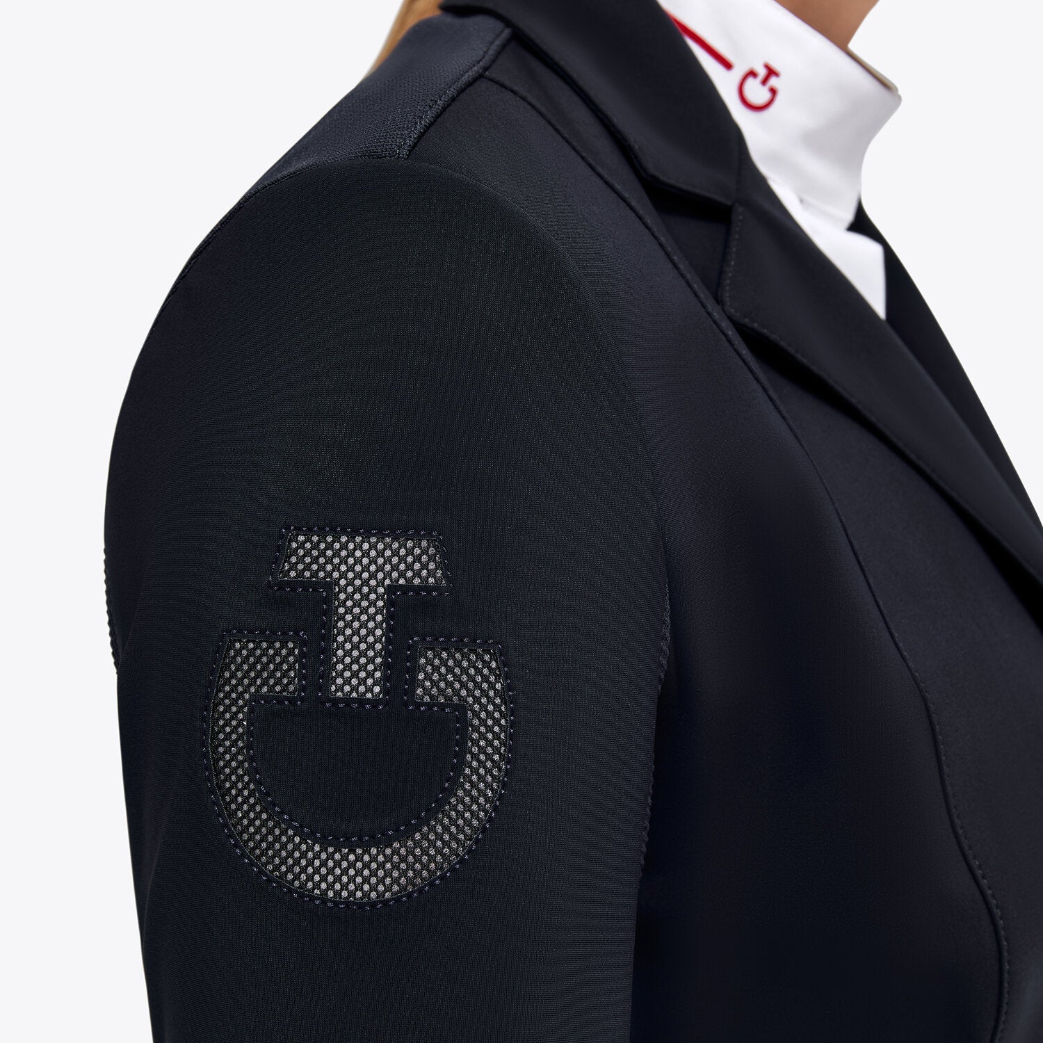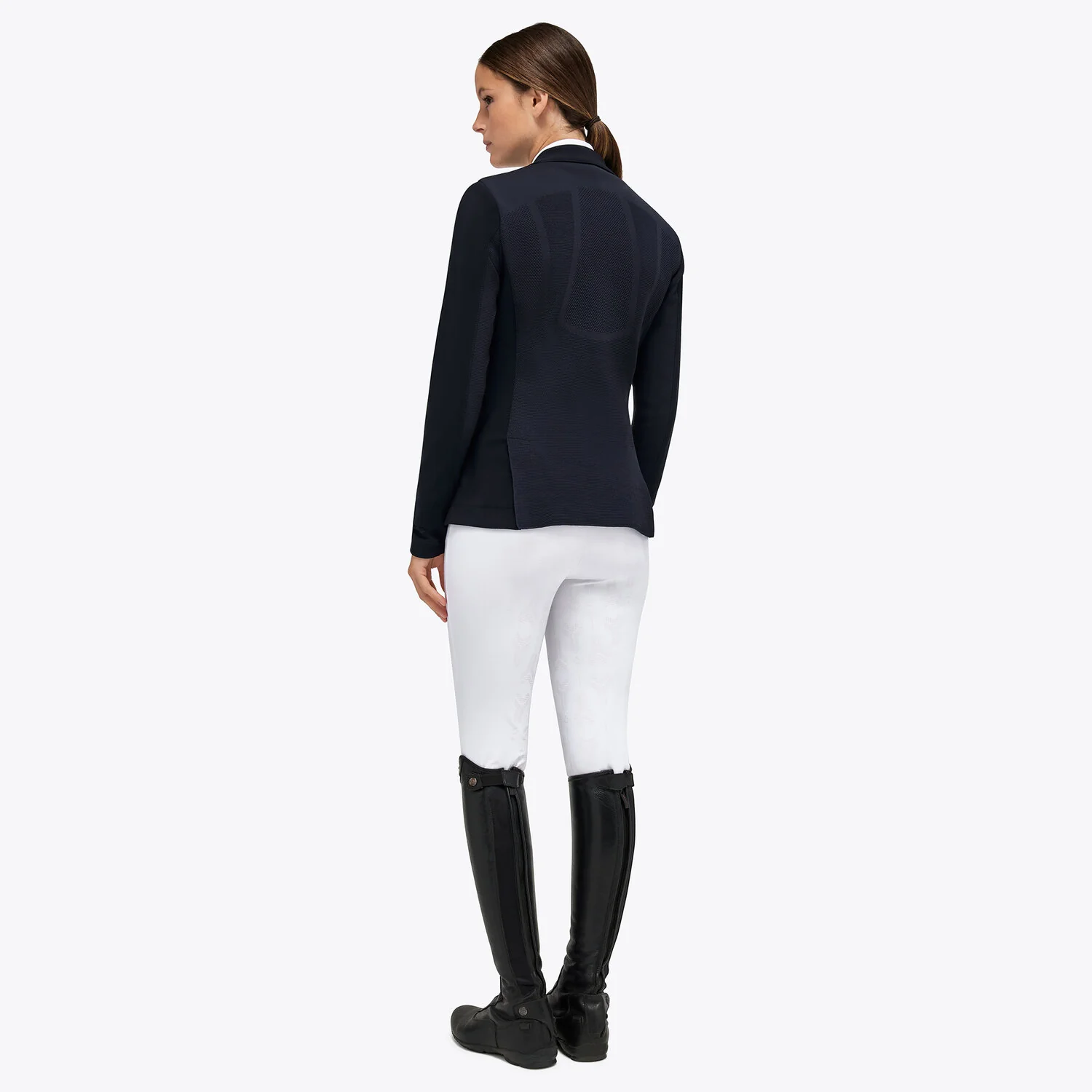La veste de concours Cavalleria Toscana Revolution marine combine technologie avancée et élégance sportive. Conçue pour les cavalières qui souhaitent allier performance et style, elle offre une coupe ajustée et ergonomique pour un confort optimal en selle.