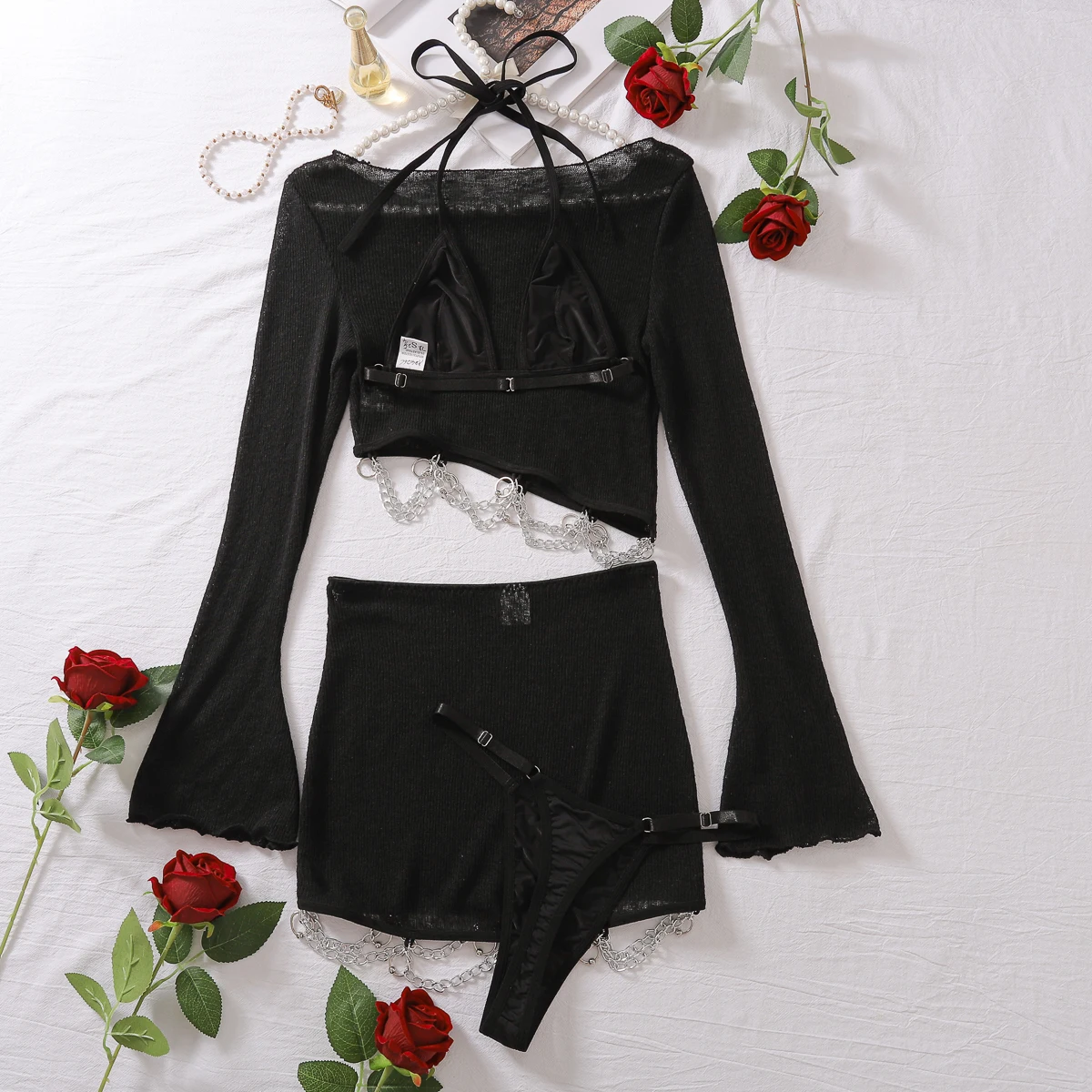 Vêtements de détente sexy pour femmes, confortable 7.0, lingerie, ensemble de 4 pièces