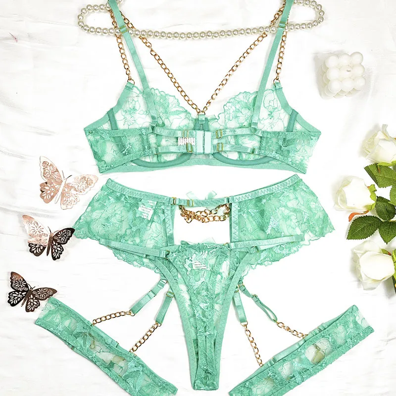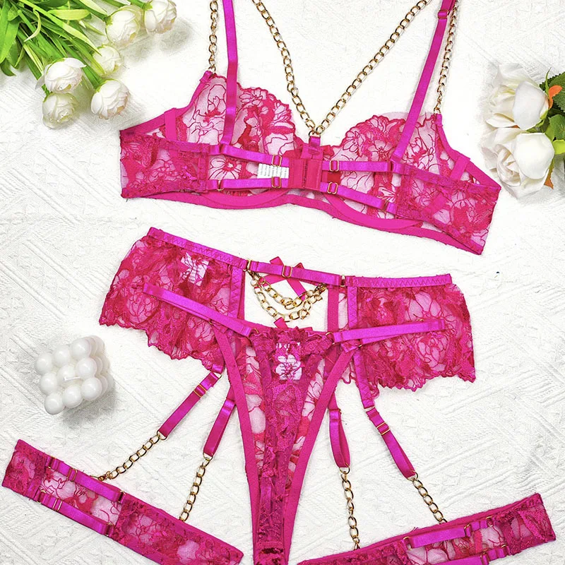 Vêtements Sexy femmes Lingerie mode chaude chaîne broderie Sexy Perspective