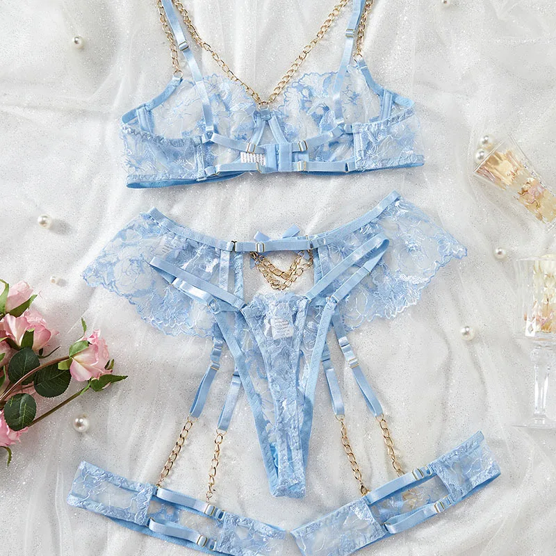 Vêtements Sexy femmes Lingerie mode chaude chaîne broderie Sexy Perspective