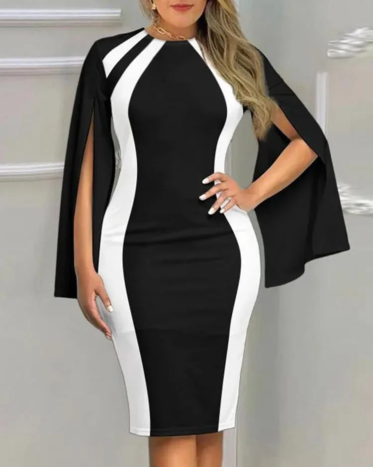 Robe crayon à manches fendues pour femme