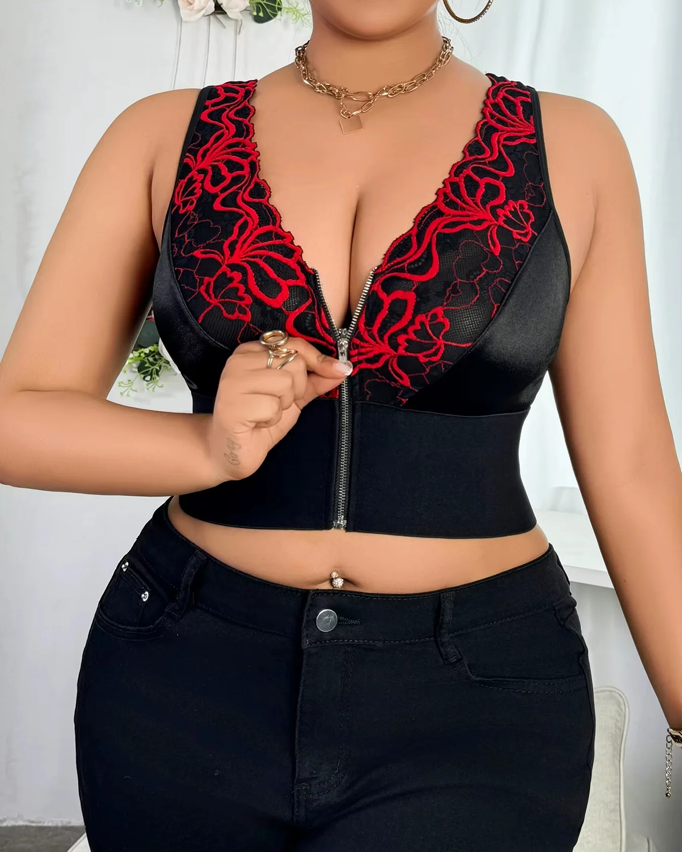 Soutien-gorge push-up sans fil – Décolleté V profond avec fermeture éclair brodée sur le devant
