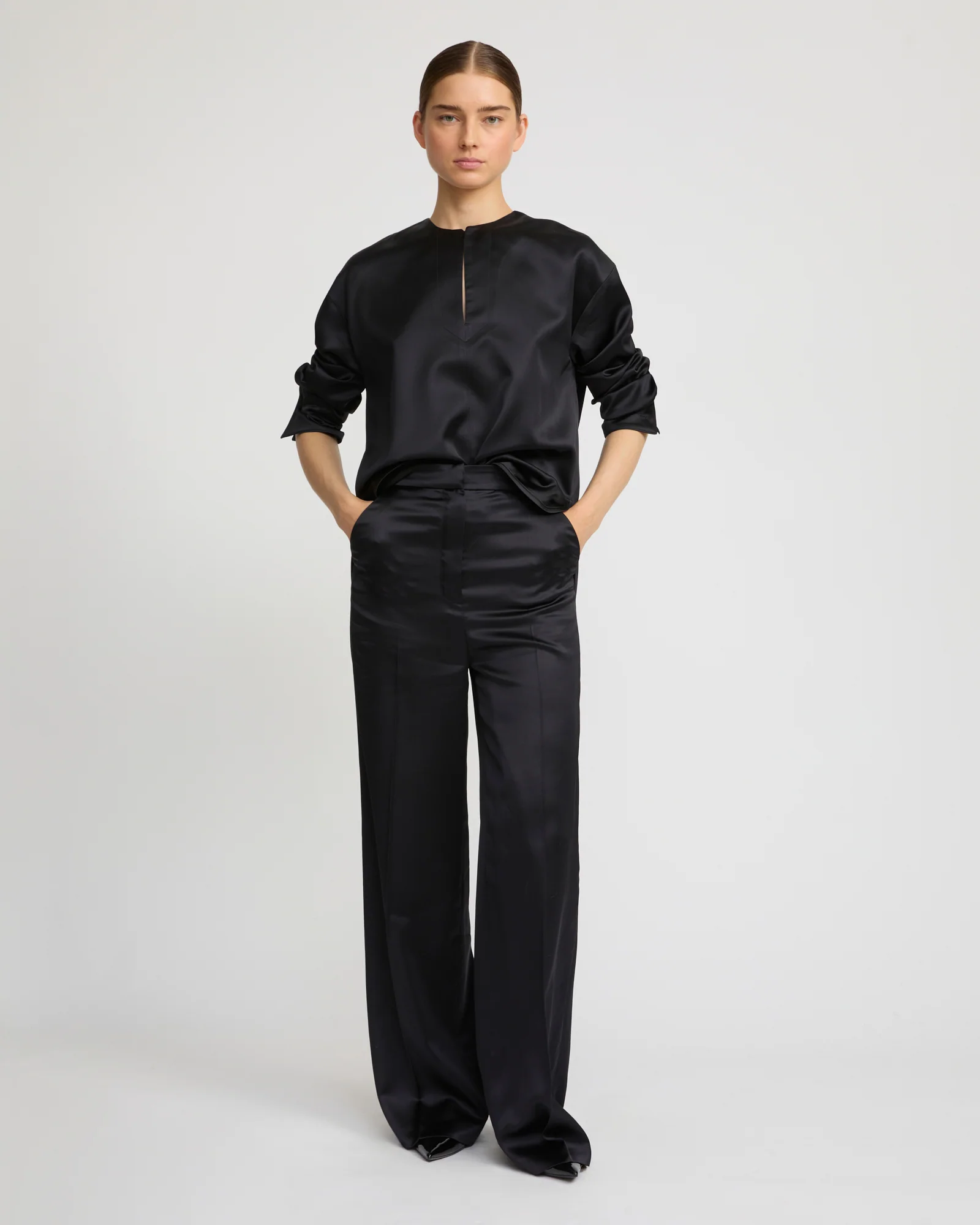 Wool voile draped blouse