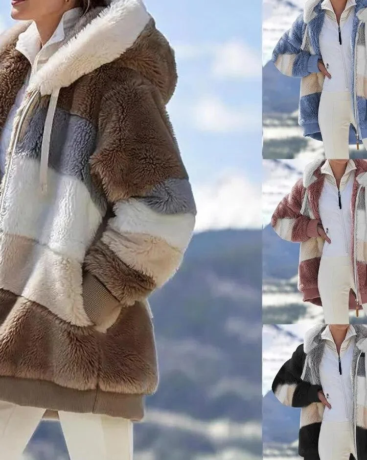 Pardessus à capuche avec col en fourrure pour femme